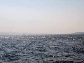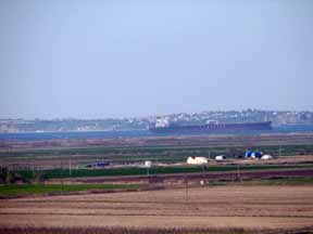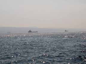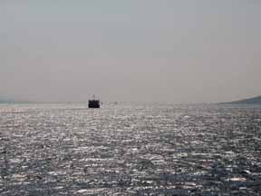 Ship on the Dardanelles from the Temple of Athena - approx 6.5 k away
