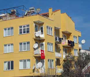 Crops, mining and a town - shoulder to shoulder As in all towns - TV dishes & laundry